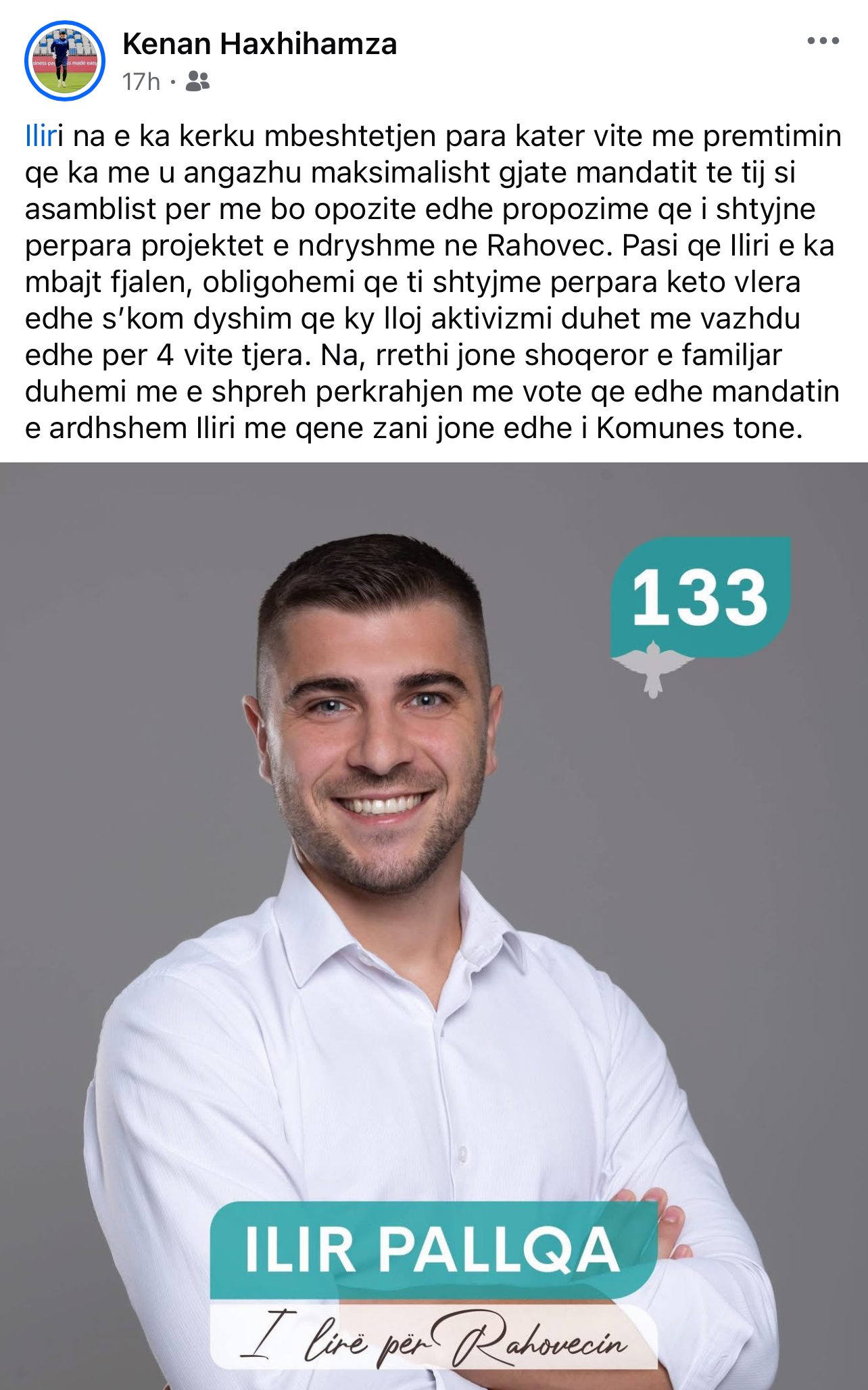 Ky i fundit përmes një postimi në “Facebook” tha se duke u nisur nga fakti që Pallqa i mbajti premtimet e para katër viteve, obligohen ta shtytin përpara arritjen në Kuvend.