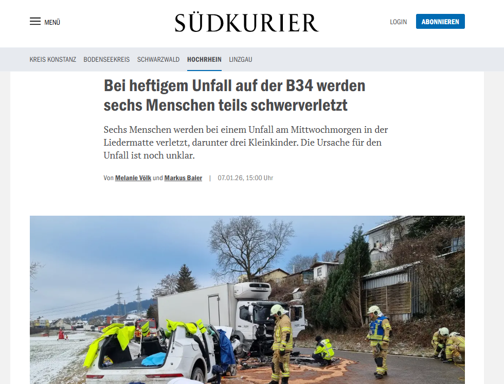 Portali gjermani Suedkurier.de ka raportuar për aksidentin ku u përfshi familja 5-anëtarëshe nga Rahoveci, e për të cilin ne transmetuam shkrimet e gazetarit Bahri Cani.