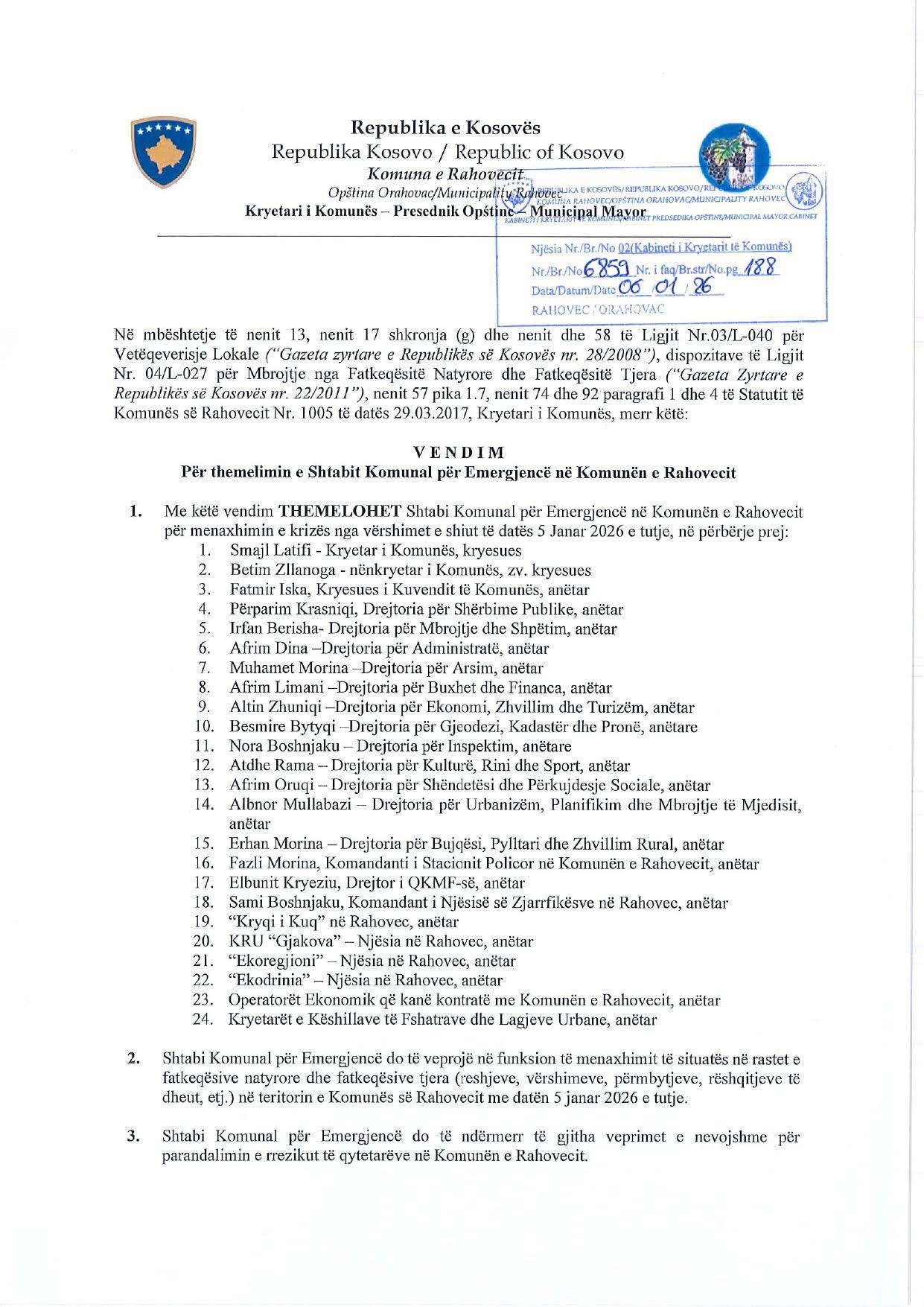 Smajl Latifi ka formuar Shtabin Emergjent pas reshjeve të fundit që çuan në përshkallëzim të situatës në komunë.