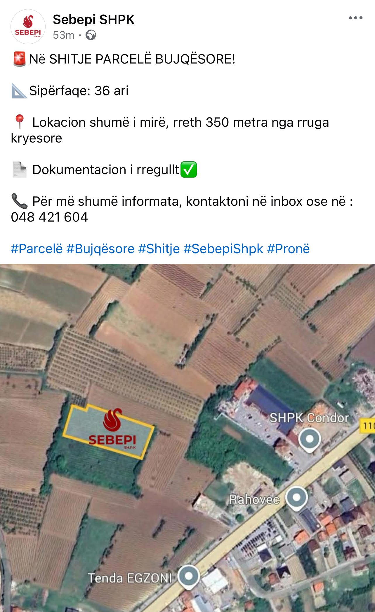 Sebepi SHPK ka një super-parcelë për shitje REAL ESTATE FacebookTwitterPinterestWhatsApp Publikuar nga Admini i madh 3 Janar, 2026 - 21:25 Agjencioni i patundshmërisë SEBEPI SHPK në Rahovec ka marrë mbi supe shitjen r një super-parcele që gjendet shumë afër Condorit. Për detaje shkoni në faqen e Sebepit në Facebook. Të tjera të rëndësishme Nesër në PROLAB: Kardiologu Agim Thaqi, endokrinologu Labinot Fetoshi e ortopedi Arben Bajraktari 9 Janar, 2026 - 12:31 Enët e verës “mollë sherri”, debat interesant në rrjetet sociale mes sipërmarrësve Shulina e Hasku 30 Nëntor, 2025 - 11:21 Suar Durguti dhe Kushtrim Kadiri nderojnë Rahovecin në Akademinë Kroate të Mbrojtjes “Dr. Franjo Tuđman” 27 Nëntor, 2025 - 16:59 FacebookTwitterPinterestWhatsApp OFK shënon Ditën Ndërkombëtare të Farmacistit, pjesëmarrës i padiskutueshëm edhe nënkryetari Haxhijaha 4 Dhjetor, 2025 - 19:11 Nëse e çmoni gjermanishten po s’dini, shkoni te Behajdini! 4 Dhjetor, 2025 - 19:11 Milot Deliu në Madrid, po merr pjesë në Kongresin ESC, ngjarjen më të madhe botërore të Kardiologjisë 4 Dhjetor, 2025 - 19:11 E bukur kjo: Shfmu “Isa Boletini” shkëlqen para nisjes së vitit shkollor 2025/2026 4 Dhjetor, 2025 - 19:11 Dita e kuadrove: Rikthejmë në skenë një nga emrat më me nam të komunës dhe jo vetëm, Osman Vuçitërnën 4 Dhjetor, 2025 - 19:12 Më të klikuarat The Guardian shkruan për ndaljen e energjisë elektrike në Rahovec pas vërshimeve të së martës Sada e LDK-së: Në QKMF lindin vetëm gratë e burrave të afërt me AAK-në Vdes papritur një grua në oborrin e Komunës së Rahovecit – rasti në hetim nga Policia Vuçitërna-Çmega konteston subvencionet e lindjes, thotë se po diskriminohen nënat që lindin jashtë Rahovecit Mobilizohet Komisioni Vlerësues për dëmet pas vërshimeve, këto janë dokumentet që duhet t’i keni për aplikim Kryeziu: Punëtorja e arrestuar s’është në listën tonë të pagave Në mesin e tyre edhe operuesja e QKMF-së, publikohen emrat e të arrestuarve nga operacioni “big” Një e arrestuar në QKMF-në e Rahovecit, dyshohet të ketë lidhje me megaoperacionin policor