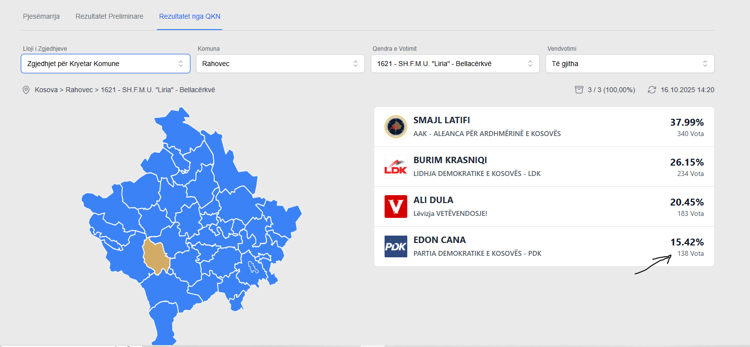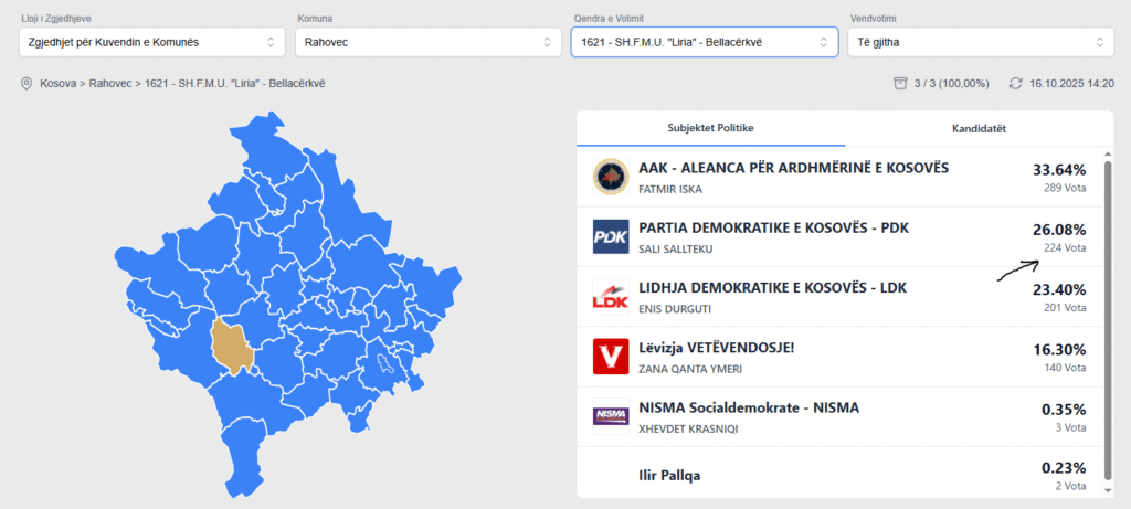 Por, nëse shohim shifrat për Kuvend Komunal, atëherë nënkuptohet që PDK mori 224 vota, apo 26.08%.